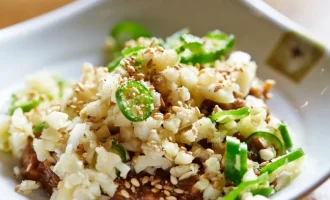 - Se adaugă 2-3 linguri de apă. Acoperiți recipientul cu folie alimentară sau cu un capac special cu o gaură pentru ieșirea aburului.